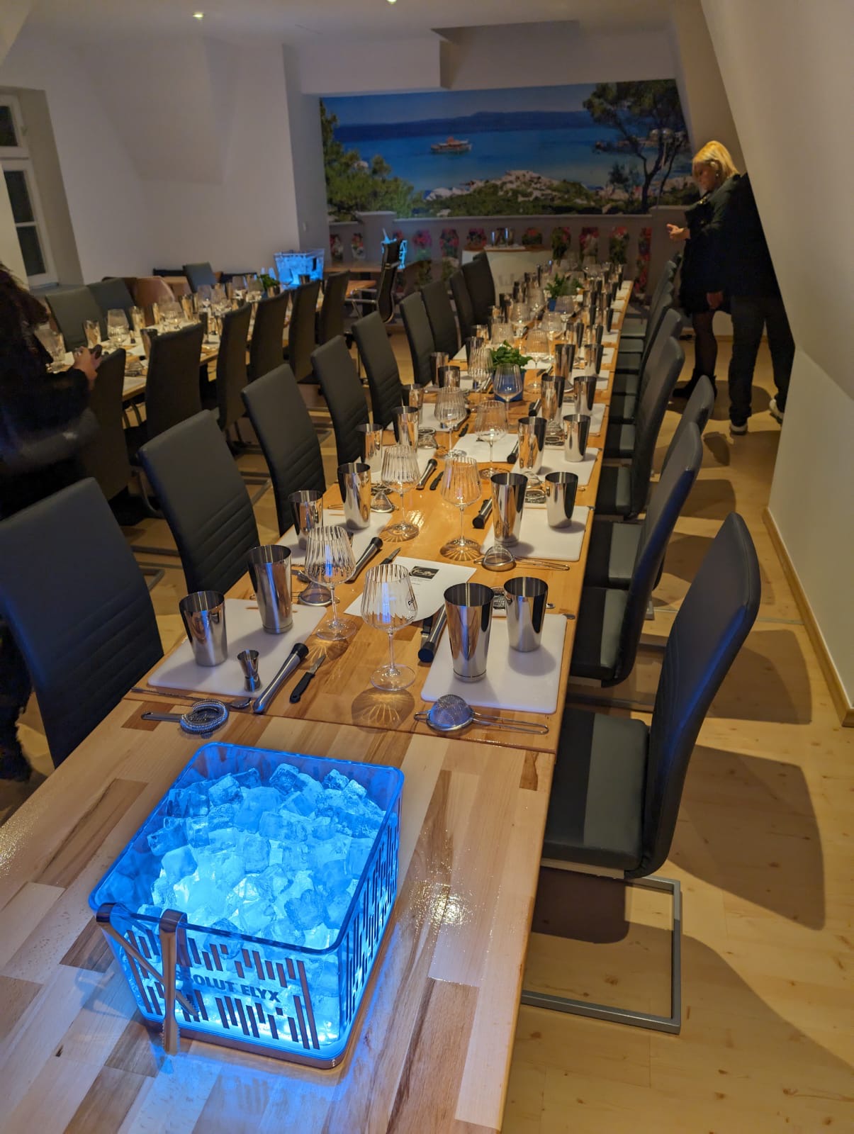 Unter Anleitung eines erfahrenen Barkeepers konnte man selbst 5 unterschiedliche Cocktails mixen, wobei uns viele gute Tipps und Tricks gegeben wurden. Es wurden auch Alkoholfreie Versionen angeboten.