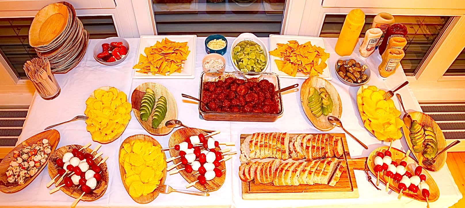 Zu unseren Kursen gehört ein liebevoll angerichtetes, kostenloses Tapas-Buffet, an dem sich unsere Gäste frei bedienen können.